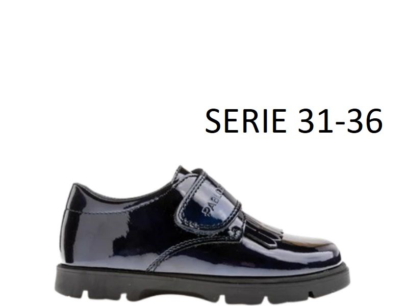 Zapato colegial de la marca Pablosky para niña en piel charol con cierre de velcro. Un diseño práctico y lleno de encanto que acompaña cada día...