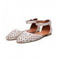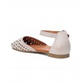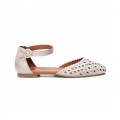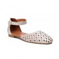 Zapato de mujer Carmela modelo 68592 en color camel o hielo. Corte de piel troquelado con los laterales abiertos, cierre mediante hebilla con pulsera en el tobillo, plantilla de piel acolchada muy confortanble y suela de goma antideslizante.