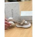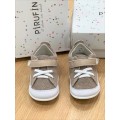 Zapatito para bebé Pirufin modelo PF102-15 en color beige. Corte realizado en material textil con materiales naturales sin agentes químicos, forro interior textil con plantilla de piel, cierre mediante velcro para el ajuste correcto, suela antideslizante muy flexible y ligera.