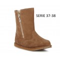 Bota Emu Gravelly modelo T12175 en color cuero para niña. Corte realizado en serraje hidrofugado que impide la entrada de humedad, el forro interior es de lana merino que transpira y mantiene los pies calientes y cómodos, cierre mediante cremallera lateral, construidas sobre una suela impermeable de goma muy duradera.