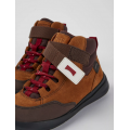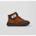 Bota Ergo de Camper modelo K900227 en color azul o marrón para niño. Corte PET reciclado / Tejido técnico, forro interior textil de tacto muy suave y calentito con plantilla OrthoLite para mayor amortiguación y transpirabilidad, cierre mediante cordones elásticos y velcro para facilitar el momento de quitar y poner, suela de goma que proporciona un excelente agarre. Dispone de Tecnología PrimaLoft para un confort climático excelente durante todo el día, abriga sin abultar, resistente al agua, capacidad de transpiración y contenido reciclado.