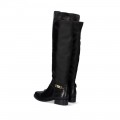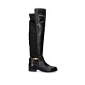 Bota de piel mosquetera Exe 320WX en color negro. Corte realizado en piel natural con detalle metálico en color dorado, parte trasera de material elástico que se adapta a la pierna, forro interior de piel y textil que proporcionan una excelente transpiración y suela de material sintético muy ligera, adherente y flexible. Altura de la caña 42 cm.
