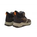 Corte realizado en material textil y piel que combina tonos marrones con horma ergonómica, forro interior de Gore-Tex térmico que impide la entrada de humedad, plantilla extraíble para una mejor limpieza e higiene, cierre mediante velcro ajustable junto con cordones elásticos y suela de material sintético muy adherente, ligera y de gran flexibilidad con shock absorber en el talón para amortiguar la pisada.