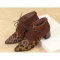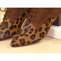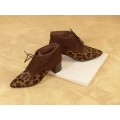 Botín de tacón Roldan modelo R-5083 en color taupe o marrón, corte realizado en piel con acabado en animal print en el tono taupe, y en el color marrón el corte es de ante y pelo, el forro interior y plantilla es de piel, cierre mediante cordones y suela sintética muy ligera con un tacón de 4.5 cm. Estilo y elegancia para tu día a día.