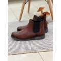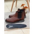 Botín chelsea para hombre Calzados Gayoso 3974 en color castaño. Corte realizado en piel natural con elásticos laterales para facilitar el calce, forro interior de piel natural con plantilla extraíble que te permite colocar otra en caso de ser necesario, la suela es de material sintético muy flexible y adherente. Fabricación española.