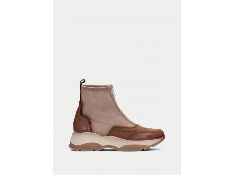 Botín Andes de Hispanitas HI222202 en color beige para mujer. El corte esta hecho en piel natural y piel serraje, forro interior textil con plantilla de piel extraíble, cierre mediante cremallera en el empeine con logo de la marca y suela de volumen muy actual, con una altura de 3,5 cm, en material sintético.