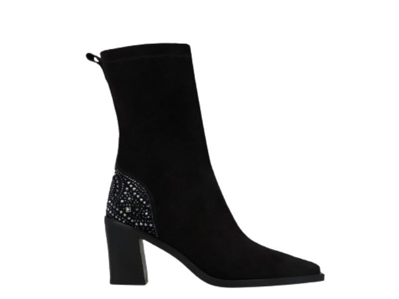 Botín de piel de la marca española Calzados Roldan modelo R5211 en color negro. Diseño con puntera afilada y detalle de tachas con grabado coco,...