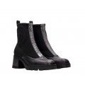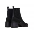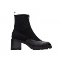 Corte realizado en piel con tejido elástico, tiene diseño strech que se adapta perfectamente al pie, forro interior de microfibra e incorpora la tecnología triflow que amortigua cada paso aportando flexibilidad y confort en la pisada, gracias a su triple almohadillado, cierre mediante cremallera en el empeine con el logo de la marca, tacón ancho en bloque de 6.5 cm de altura y suela de goma termoplástica expandida.