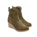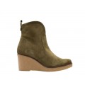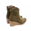 Precioso botín con cuña crepé Porronet en color kaki para mujer. Podrás llevarlo cómodamente al trabajo o a tus momentos de tiempo libre ya que ofrece un confort absoluto. Está fabricado en España de forma artesanal con materiales de primera calidad.