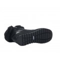 Corte realizado en piel natural con cuello de pelo, forro de Gore-Tex que impide la entrada de agua al interior del botín y a su vez garantiza una buena transpiración, lleva plantilla extraíble para una mejor limpieza, el cierre es mediante cremallera lateral exterior y la suela es de material sintético antideslizante.