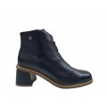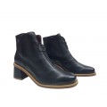 Corte realizado en piel natural muy suave y flexible, forro de piel natural que proporciona una excelente transpiración con plantilla extraíble, cierre mediante cremallera central, tacón ancho de 7 cm de altura y suela de goma muy adherente. Hecho en España.