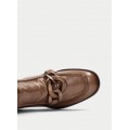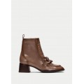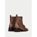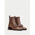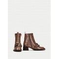 Botín con tacón Charlize de Hispanitas HI222337 en color taupe para mujer. Corte realizado en piel charol con detalle de maxi cadena en el copete, forro interior de piel natural, incorpora la tecnología Triflow que amortigua cada paso aportando flexibilidad y confort en la pisada, gracias a su triple almohadillado, tacón ancho de 5 cm con suela de poliuretano.