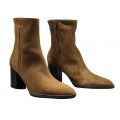 Elegante botín de piel serraje con tacón alto Harika de la marca Vexed para mujer. Un fondo de armario muy versátil ideal para aquellas ocasiones en las que quieras lucir arreglada sin renunciar a la comodidad.