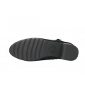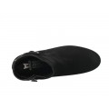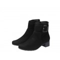 Corte realizado en piel serraje con detalle de hebilla en la caña a modo decorativo, forro interior sintético con plantilla extraíble Soft-Air muy cómoda que reduce los duros impactos de la pisada al mínimo absoluto, cierre mediante cremallera lateral, suela de caucho con tacón ancho de 3 cm.