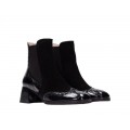 Te presentamos un botín de Hispanitas que no te dejará indiferente. Combina la piel y el acabado charol con detalle de troquelados en la puntera, además resulta un modelo muy elegante para llevar en ocasiones en las que quieras llevar un look arreglado.