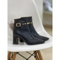 Botín de piel de la marca española Calzados Roldan modelo R5211 en color negro. Diseño con puntera afilada y detalle de tachas con grabado coco,...