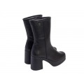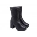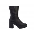 Corte fabricado en piel natural forro interior textil con acabado aterciopelado, cierre de cremallera, tacón ancho de 8.5 cm y plataforma de 2.5 cm con suela sintética muy ligera. Fabricación española.