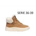 Corte realizado en piel serraje waterproof con cuello y lengüeta con pelito muy suave y calentito, forro textil de pelito para un buen aislamiento contra el frio, plantilla extraíble, cierre mediante cremallera lateral y cordones para un buen ajuste, la suela es sintética equipada con la tecnología Geox Respira para proporcionar la transpiración óptima.