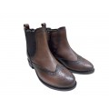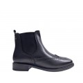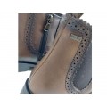 Corte realizado en piel natural con detalle de picados, forro interior con membrana Dry-Tex impermeable y plantilla de piel extraíble acolchada para mayor confort, cierre mediante cremallera y elástico lateral para facilitar el calce y suela sintética muy adherente y ligera.