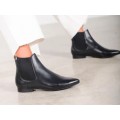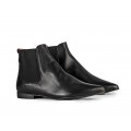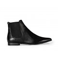 Corte liso realizado en piel natural con diseño de punta afilada y detalle de elásticos en la caña, forro interior de piel natural y suela sintética muy ligera y flexible.
