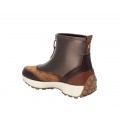 Corte realizado en piel combinado con otros materiales, forro interior textil con plantilla extraíble, dispone de tirador trasero para facilitar el calce, cierre mediante cremallera en el frontal, suela sintética de volumen con detalle dentado en el talón.