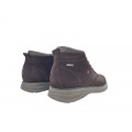 Corte liso realizado en piel serraje marrón con acolchado textil en el cuello, forro interior con membrana impermeable que impide la entrada de humedad y favorece la transpiración, plantilla extraíble, cierre mediante cordones al tono, suela de goma muy adherente y flexible. Fabricación española.