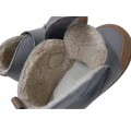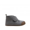 Botita respetusa con cierre de velcros para niños en color gris. Está fabricada en piel natural con forro de borreguito para que tu peque tenga los pies siempre secos y calentitos.