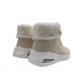 Diseño de corte alto tipo bota fabricado en material simil piel con detalle de pelito en el cuello y la lengüeta, forro interior textil con plantilla extraíble comfort travel efecto memoria, cierre mediante cordones y suela Eva de gran adherencia con cámara de aire en el talón para amortiguar la pisada.