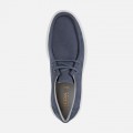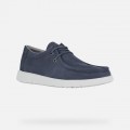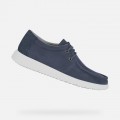 Mocasín Errico para hombre modelo U25AYC en color azul o verde oliva. Corte realizado en material textil con pieza en piel serraje en el talón, forro interior textil con plantilla extraíble para una mejor limpieza e higiene, cierre mediante cordones y suela de material sintético perforada con la tecnología Geox respira.