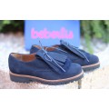 Blucher para niña Beberlis modelo 19895 en color marino. Corte realizado en serraje hidrofugado que impide la entrada de agua con fleco extraíble decorado con pelito, forro y plantilla interior de piel muy transpirables, cierre mediante cordones al tono y suela dentada muy cómoda y antideslizante. ¡Un zapato pensado en la vuelta al cole!