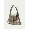 Bolso de hombro BV232511 en color camel, blanco-beige o dorado para mujer. Fabricado en poliuretano con cierre de solapa y broche de imán, forro interior textil con doble compartimento interior que te permite llevar tus cosas ordenadas, cuenta con asa corta y larga regulable. Medidas:22 x 19 x 7 cm.