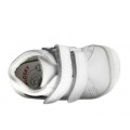 Deportivo para bebés Pablosky en color blanco para niño. Pertenece a la linea Step Easy, respetuoso con el desarrollo natural de tu bebé y además cuenta con horma fisológica y suela superflex de goma antideslizante que favorece la flexión normal del pie.