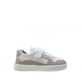 Corte realizado en piel natural combinando diferentes colores, forro interior textil con plantilla extraíble antibacteriana, cierre mediante velcro ajustable y suela sintética muy adherente con drop cero.