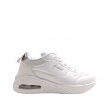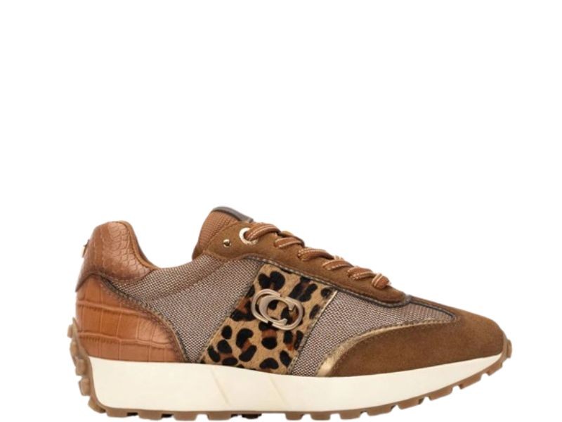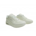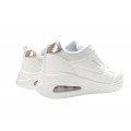 Corte realizado en material sintético simil piel con detalle de pieza dorada en el talón en acabado brillante, forro interior textil con plantilla extraíble urban comfort, cierre mediante cordones al tono, equipado con cámara de aire para amortiguar la pisada y suela sintética de gran adherencia.