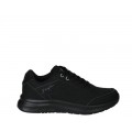 Corte realizado en material simil piel, con forro interior textil equipado con plantilla comfort feel con efecto memoria y extraíble, cierre mediante cordones y suela sintética con resistencia al deslizamiento en todo tipo de superficies.