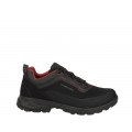 Corte fabricado en material sintético con refuerzo perimetral de goma, Forro Gore-Tex Performance Comfort, cierre mediante codones y suela poliuretano bidensidad Trail. Peso 450gr.