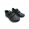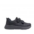 Corte realizado en material sintético simil piel, forro interior textil con plantilla extraíble comfort foam de gran amortiguación, cierre mediante doble velcro y suela sintética muy ligera y flexible.