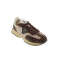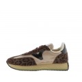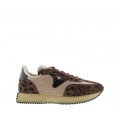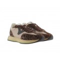 Corte realizado en nylon y serraje con detalles en animal print, forro interior textil con plantilla acolchada para mayor comodidad, cierre mediante cordones, suela tostada y patín dentado en verde para favorecer un mejor agarre.
