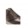 Corte realizado en piel color bronce con forro interior textil equipado con plantilla extraíble forrada en piel para aportar una excelente transpiración, cierre mediante cremallera y cordones, suela de goma con cuña bajita de 4 cm.