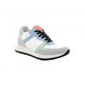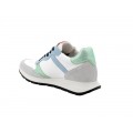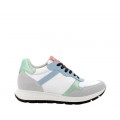 Corte realizado en piel y ante con piezas multicolor, forro interior de piel y textil con plantilla anatómica extraíble y revestida en piel para garantizar transpirabilidad e higiene, cierre mediante cordones en tono negro haciendo contraste y suela estilo runnig con ranuras y punta elevada para mayor adherencia