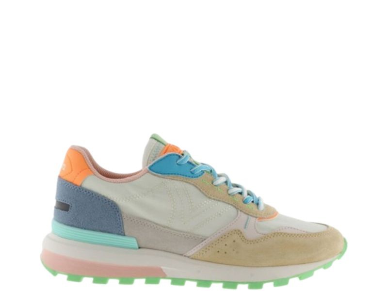Dale un toque fresco y moderno a tus looks con el deportivo Luna de Victoria multicolor, diseñadas para combinar suavidad y estilo en perfecta armonía. Su mezcla de colores y texturas las convierte en una opción versátil para cualquier ocasión, mientras que los detalles en pespuntes, abalorios decorativos y cordones redondeados aportan un acabado único y sofisticado.