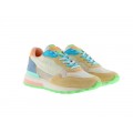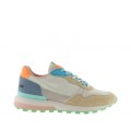 Corte realizado en piel vacuno y en nailon suave que combina con piezas super puestas de serraje y efecto piel. V retro y nombre de victoria cosido en el lateral, forro interior textil con plantilla extraíble, cierre mediante cordones, suela bicolor fabricada en phylon y goma.