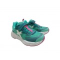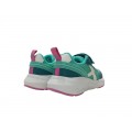 Corte realizado en material sintético combinando diferentes acabados y colores, refuerzo en la puntera para mayor durabilidad, forro interior textil con gran transpiración y plantilla extraíble, cierre mediante cordones elásticos y velcro ajustable, la suela es sintética con gran adherencia y flexibilidad.