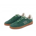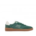 Diseño de corte bajo realizado en serraje con detalles en blanco haciendo contraste, forro interior textil con plantilla acolchada, cierre mediante cordones y suela de goma color caramelo con grabados de la marca en talón y planta.