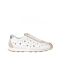 Corte realizado en piel natural con detalle de tachuelas, forro interior textil con plantilla extraíble, cierre mediante cordones y suela de goma muy adherente y flexible.