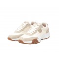 Corte realizado en material textil, forro interior textil muy transpirable con plantilla extraíble, cierre mediante cordones y suela sintética combinada con detalle goma dentada color caramelo.
