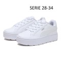 Deportivo para niña Puma Karmen L PS 387375 en color blanco. Un deportivo diferente que les encantará por su suela de plataforma y sus detalles en plateado sin olvidarnos de la comodidad que ofrecen ya que resultan muy ligeras y flexibles. No dejes escapar este moderno deportivo que te proponemos para tu peque ya a la venta en nuestra tienda online junto con gran variedad de modelo donde elegir de las mejores marcas. ¡Corre a por el tuyo!