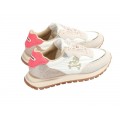 Corte realizado en mezcla de nylon reciclado, piel y malla con logo de la marca en la parte trasera y pieza glitter en el talón, además dispone de detalle de calavera en el lateral, forro interior de poliester reciclado muy transpirable con plantilla extraíble, cierre mediante cordones con detalles a contraste y suela dentada de goma y TPR con detalle de hendidura sobresaliente en parte trasera.