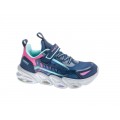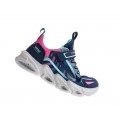 Corte fabricado en material textil y sintético de primera caliad, forro interior textil con plantilla amortiguadora transpirable y acolchada para el auténtico confort, cierre mediante cordones elásticos y velcro, suela de volumen con luces en la suela multicolor.