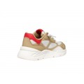 Corte realizado en material sintético y textil en color blanco con piezas en beige y rojo, forro interior textil con plantilla extraíble, cierre con cordón elástico para completar el calce y suela sintética con tecnología Geox respira para mantener el pie a la temperatura ideal durante toda la jornada.